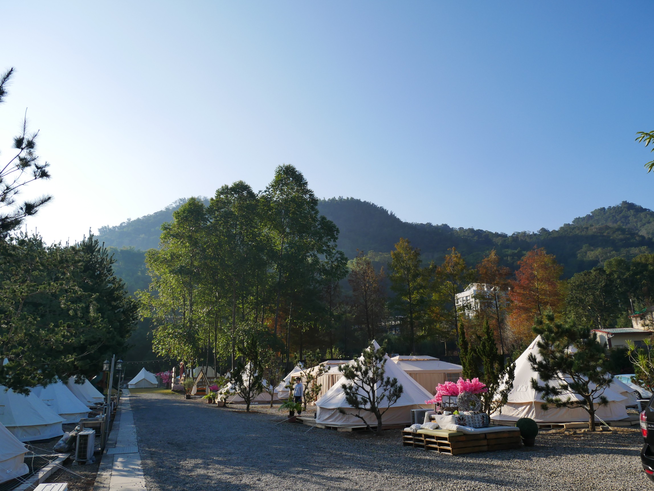 地點是位於南投國姓鄉的泊樂熊村,因為是懶人露營行程,也不需要自行搭設帳篷,另外還有製作杯墊的手作課程,現場也有提供衛浴設備、羽毛球、射箭等遊樂設施,和一般飯店一樣是下午三點入住,亦有提供和晚餐與隔日的早餐,但為了讓大家還是有來露營的感覺,所以料理皆需自行烹飪調理。